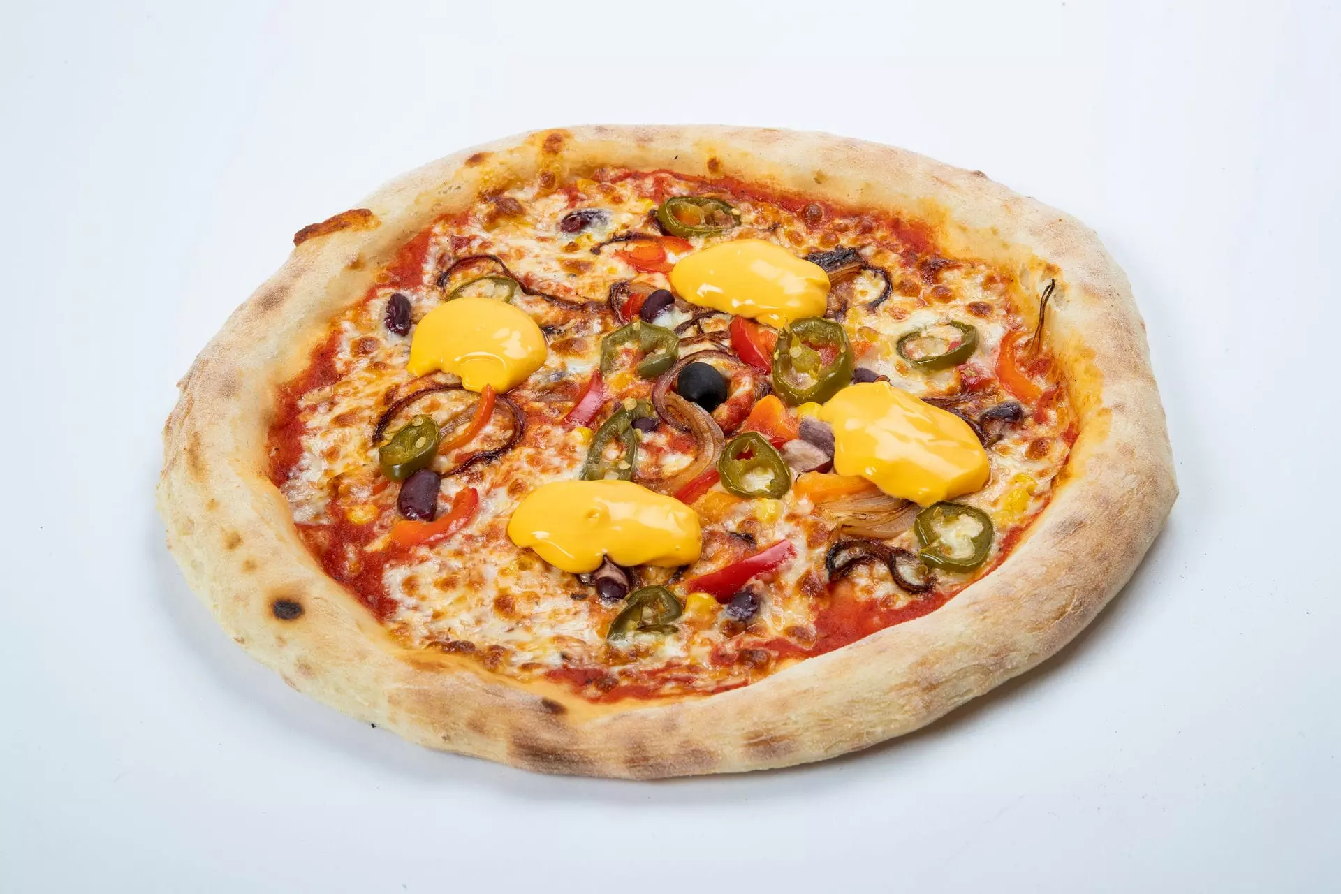 Dnevna pica: Mehiška (pelati, sir, nacho sir, koruza, paprika, fižol, rdeča čebula, feferoni)