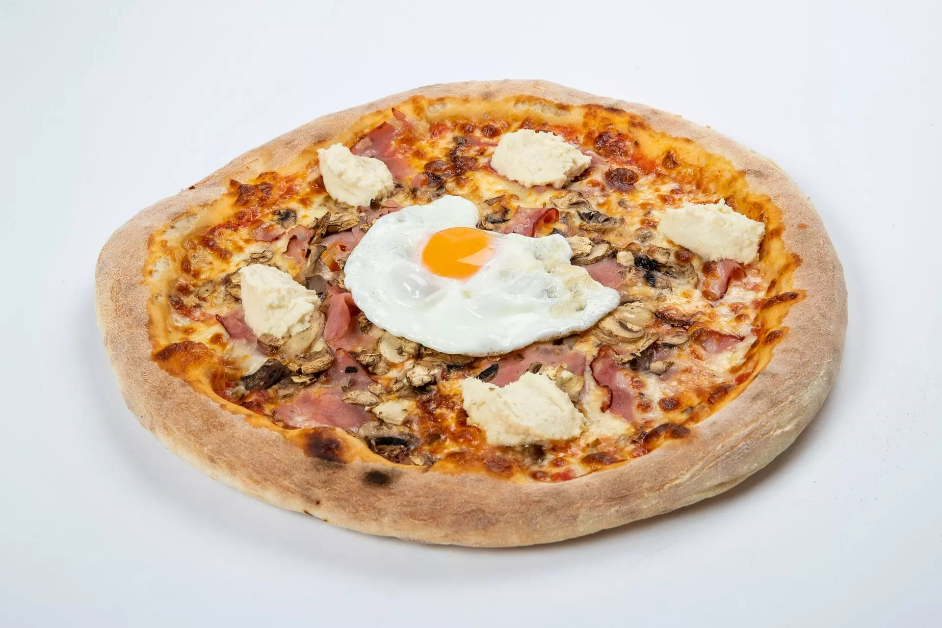 Dnevna pizza: kmečka (pelati, sir, šink, gobe, hren, čebula)