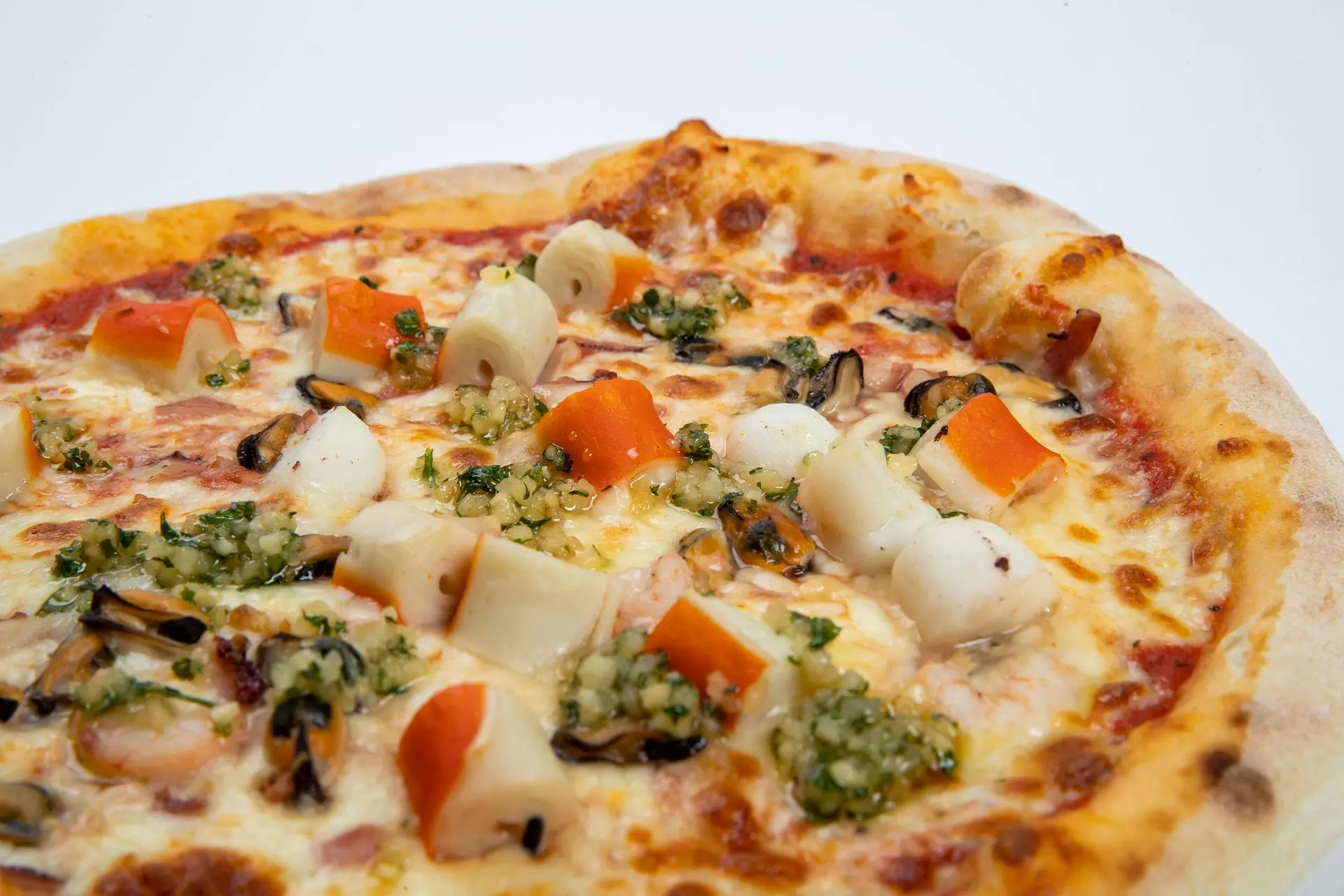 Pelati, mocarela, morski sadeži, tržaška omaka in oliva