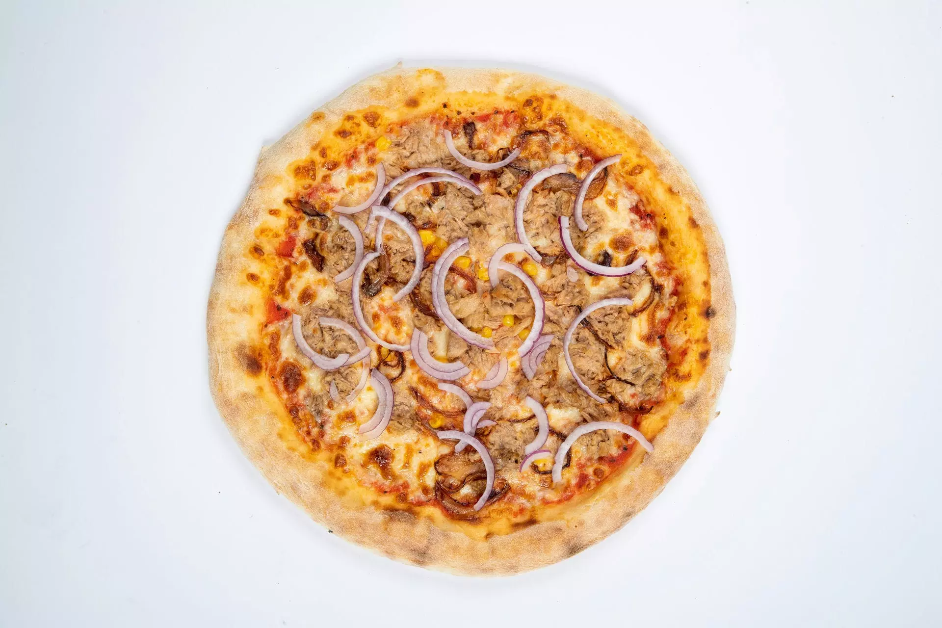 Pelati, mocarela, tuna, čebula, koruza, oliva
