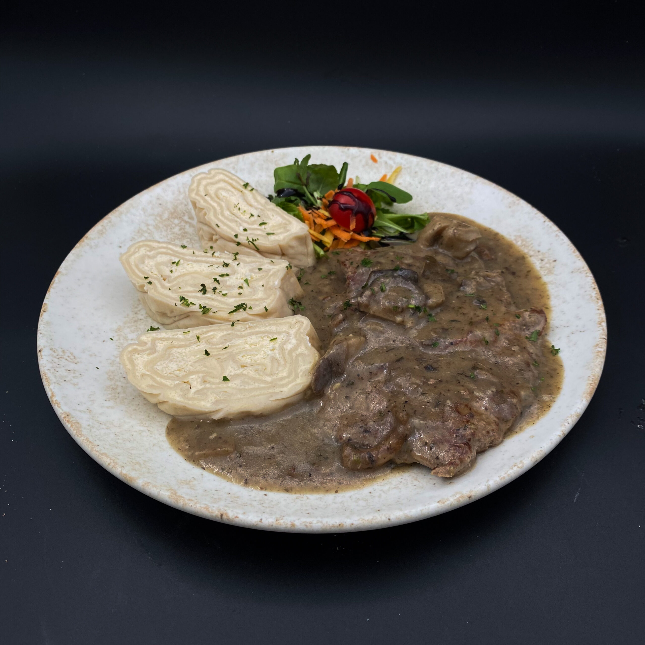 PREMIUM: Telečji file z gobami in tartufato, sirov štrukelj, solata