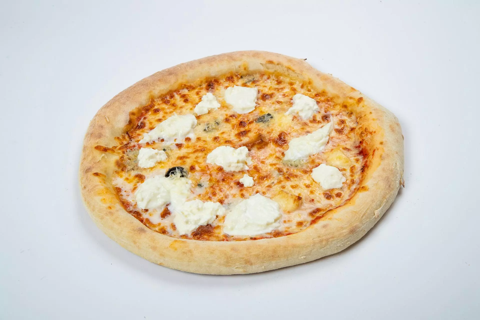 Pelati, mocarela, gorgonzola, diljen sir, bufala, parmezan in skuta